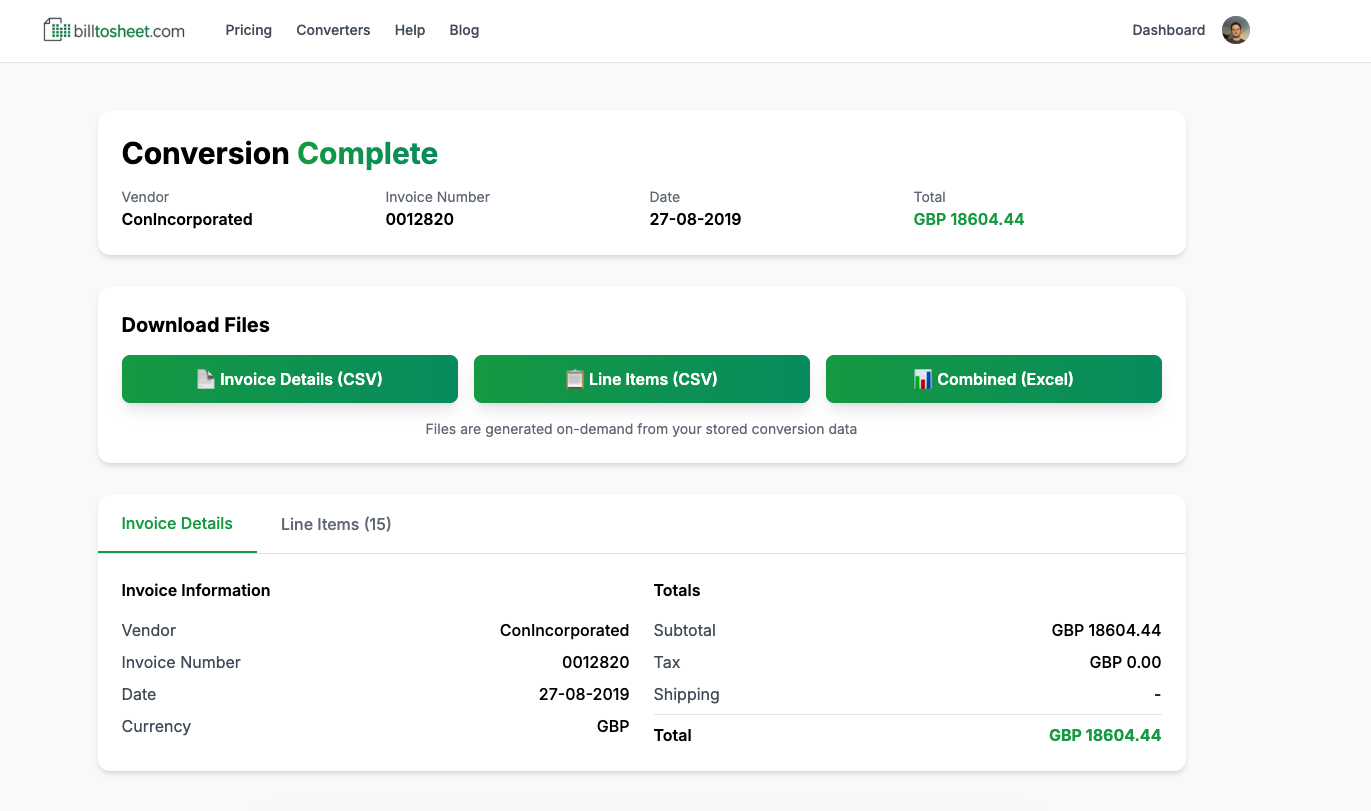 Improves data consistency and analysis – Standardised CSV outputs make it easier to track spending, reconcile accounts, and run analytics across large volumes of invoices.